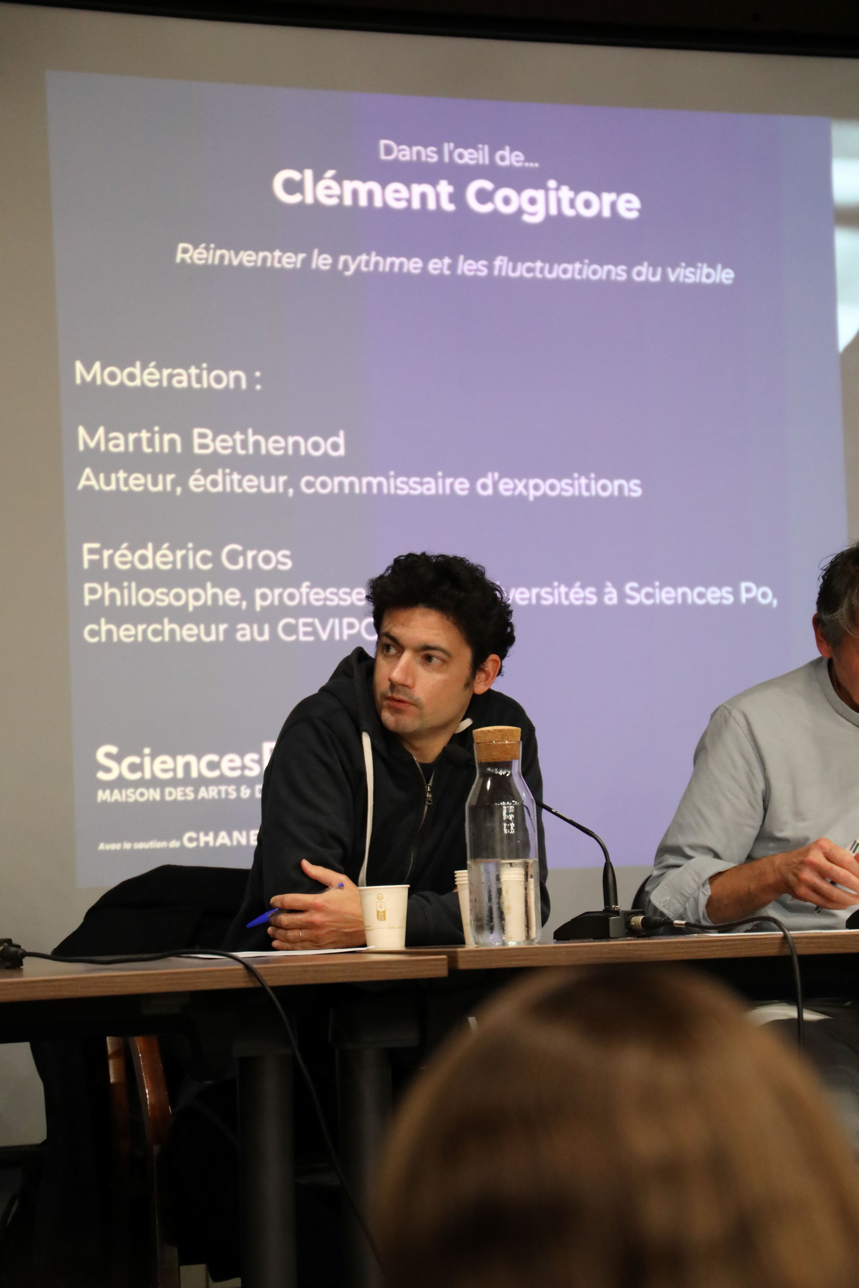 Le 9 octobre 2025, Martin Bethenod invitait l'artiste Clément Cogitore pour aborder son travail et son mode de créativité. Vivant et travaillant entre Paris et Berlin, il développe une pratique à la croisée de l'art contemporain et du cinéma. Mêlant films, vidéos, installations et photographies, son travail questionne les modalités de cohabitation des hommes avec leurs images. Il y est souvent question de rituels, de mémoire collective, de figuration du sacré ainsi que d’une certaine idée de la perméabilité des mondes. Amarine Gerber, Pablo Monfort Millán et Julia Waldmann, étudiants à l’École d’Affaires publiques, l’École du Management et de l’Impact et à l’École des Affaires internationales, mais aussi ambassadeurs de la Maison des Arts & de la Création, reviennent sur cet échange, partageant leurs observations, leurs réflexions, les idées et les enjeux qu’ils ont soulevés ensemble.
