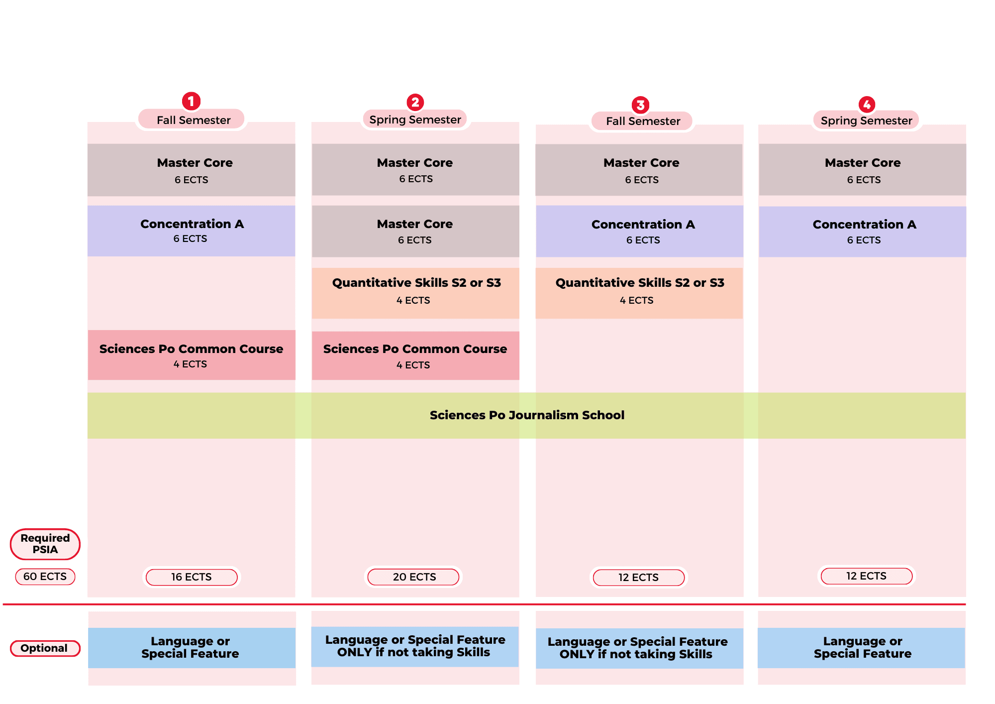 Below is the degree structure with the PSIA elements for the joint degree program: