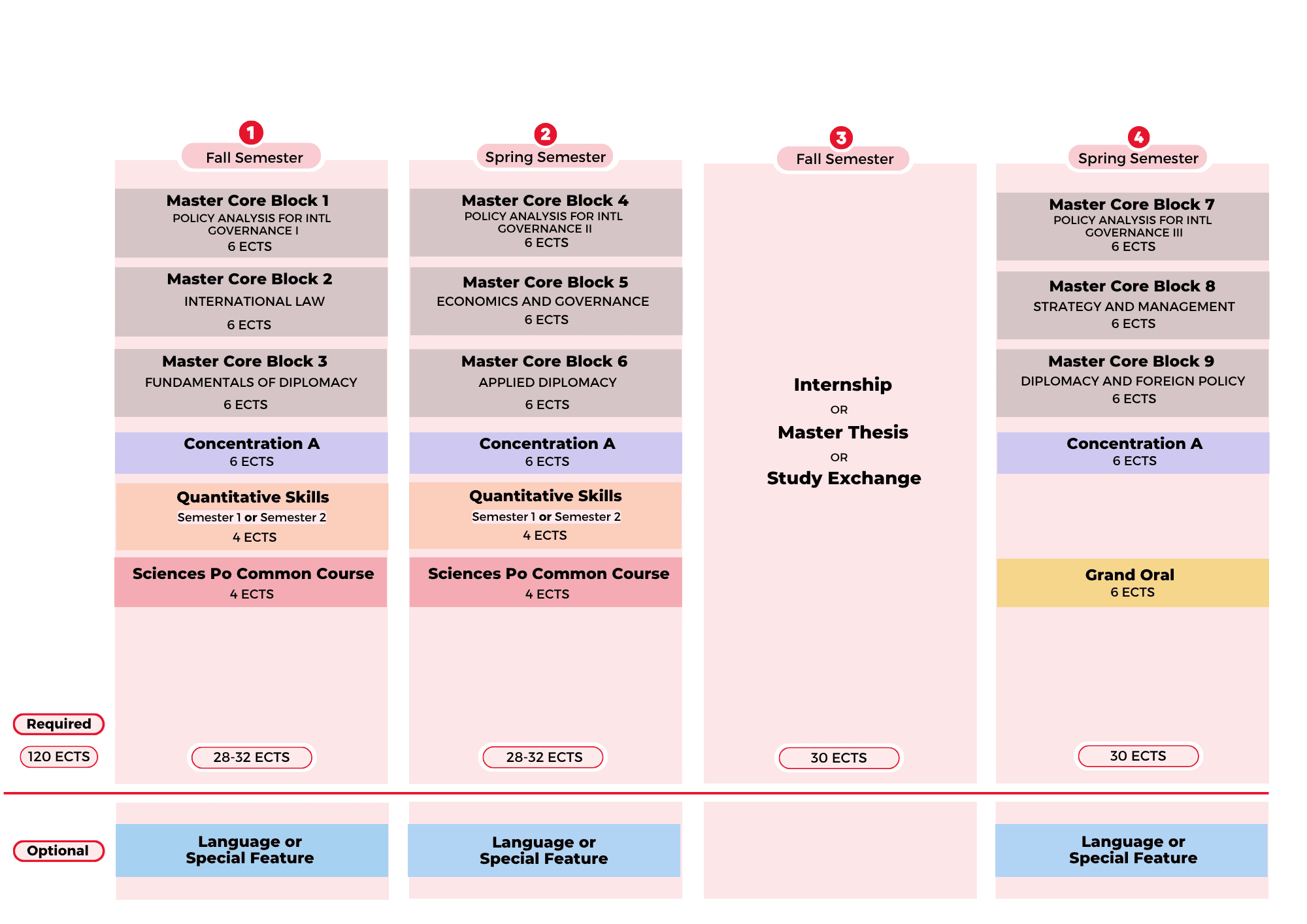 Students starting the International Governance and Diplomacy program will follow the program structure below: