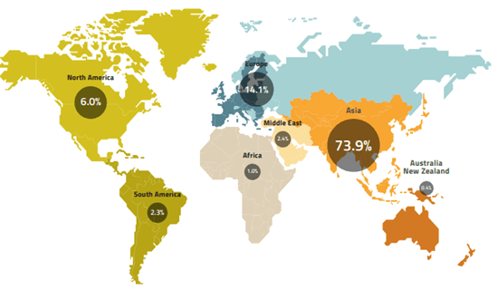 To understand the potential impact of green hydrogen policies on European industry, it is crucial to examine one of the most significant and carbon-intensive sectors: steel production. As the world’s most important engineering material, steel has many applications, such as in the automobile, technology, construction, and defense industries. The sector, which gross value-added accounts for €191 billion per year in the EU, annually produces 140 million tons and employs more than 2.5 million people [42]. Moreover, steel represents a crucial export product for the EU (Figure 5). The continent is the second largest producer (14.1% of global production) after China (73.9%) and before North America (6%)(42). While the steel sector is undeniably a strategic industry for the EU, it is also a significant source of pollution. It is responsible for 9% of the global GHG emissions and 4% of the EU’s CO₂ emissions due to the massive use of coal. Estimates state that 1.85 tons of CO2 is emitted to produce 1 ton of steel(43).