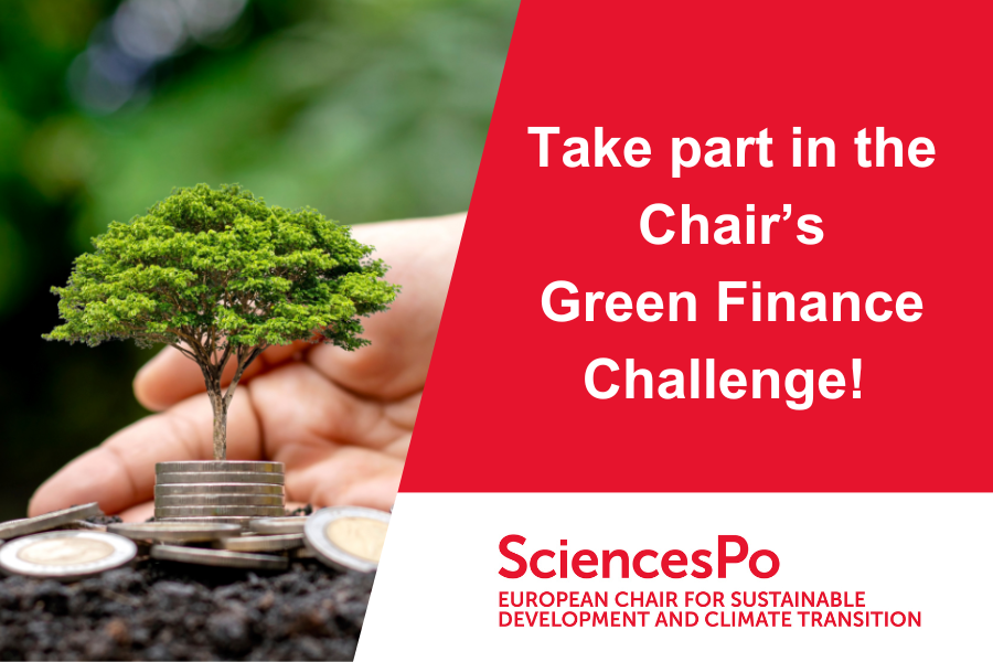All current students of the Paris School of International Affairs (PSIA) and the École d’Affaires Publiques (EAP) are invited to take part in the third annual Green Finance Challenge with HSBC Continental Europe, organised by the European Chair for Sustainable Development and Climate Transition at Sciences Po.
