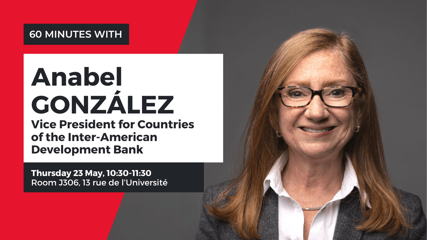 The Paris School of International Affairs (PSIA) is delighted to welcome Ms. Anabel González, Vice President for Countries of the Inter-American Development Bank, a leading authority in international trade, who will share her expert insights on global trade dynamics, particularly focusing on Latin America and the Caribbean.