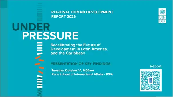 We invite you to the presentation of the main findings of the 2025 Regional Human Development Report for Latin America and the Caribbean, “Under Pressure: Recalibrating the Future of Development in Latin America and the Caribbean”, by the United Nations Development Programme (UNDP) for LAC, with the presence of the Chief Economist, Almudena Fernandez, and Michelle Muschett, Regional Director for Latin America and the Caribbean at UNDP.