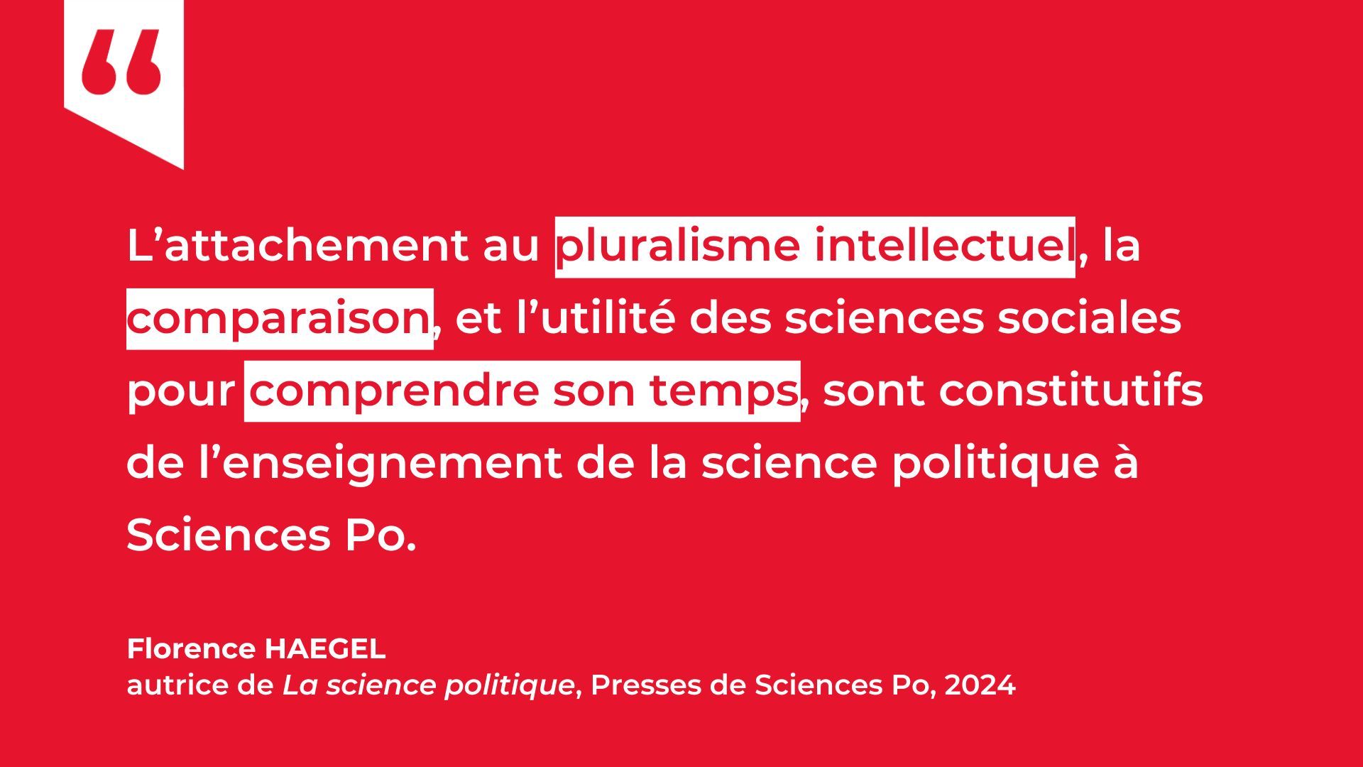 Ces trois éléments, l’attachement à un très grand pluralisme intellectuel, la comparaison, et l’utilité des sciences sociales pour comprendre les enjeux contemporains, sont constitutifs de l’enseignement de la science politique à Sciences Po.