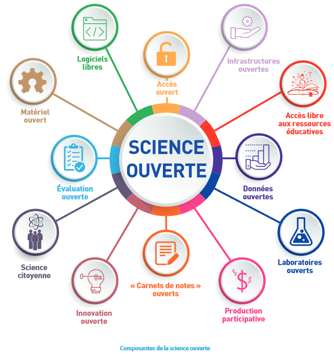 La science ouverte est la diffusion sans entrave des résultats, des méthodes et des produits de la recherche scientifique. Elle s’appuie sur l’opportunité que représente la mutation numérique pour développer l’accès ouvert aux publications et – autant que possible – aux données, aux codes sources et aux méthodes de la recherche. (Ministère de l’Enseignement supérieur, de la Recherche et de l’Innovation, MESRI)