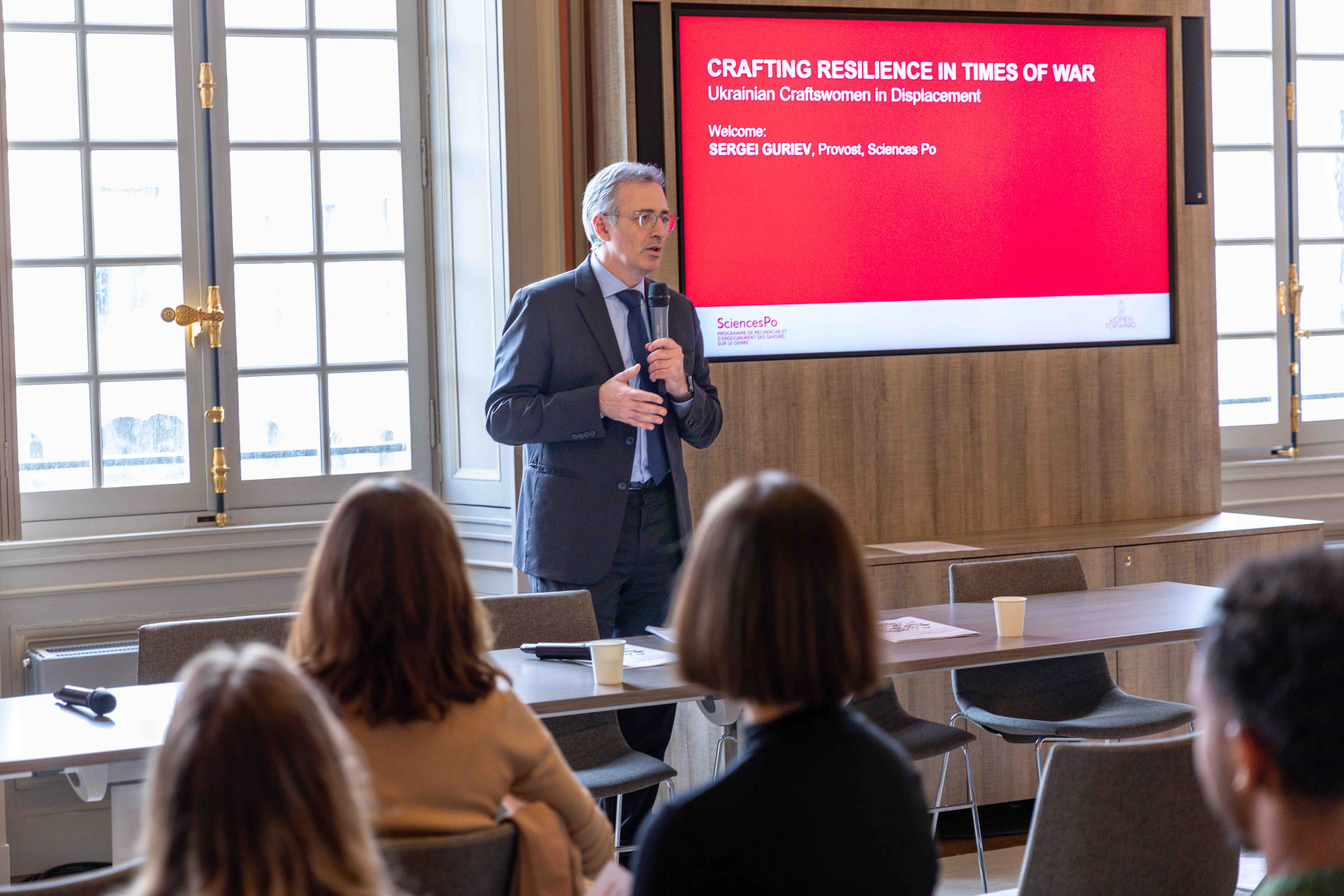 Sciences Po's Provost Sergei Guriev opened the event evoking the context of the Russian invasion in which this project took place: “This war will not be finished by research or teaching but by fighting on the battleground”. Yet, he elaborated on the relevance of research in these circumstances: “When we support communities destroyed by the war, it is our responsibility to invest resources in the most efficient way, and for that we need research, we need to understand what are the most important challenges and how we can address them. And this is why it's not only the weapons and soldiers that will decide this war, but also our ability to help Ukrainian society in the most efficient way and for that I think this report is important.”