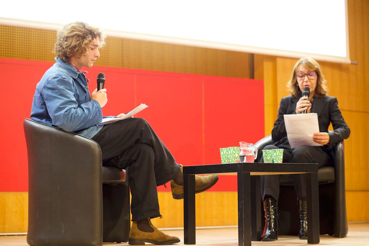 Dans un amphithéâtre Émile Boutmy complet, Delphine Grouès, directrice de la Maison des Arts et de la Création, a remercié l'écrivain pour ses “échanges permanents avec notre communauté étudiante, que ce soit à Paris ou sur nos campus en région”.