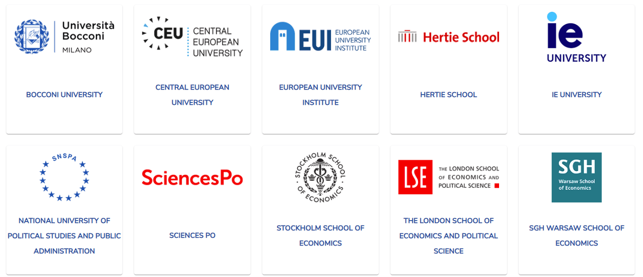 Ce travail collectif associe 10 grandes institutions européennes (Università Bocconi, Central European University, European University Institute, Hertie School, IE University, National University of Political Studies and Public Administration, Sciences Po, Stockholm School of Economics, The London School of Economics and Political Science, SHG Warsaw School of Economics).